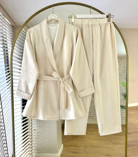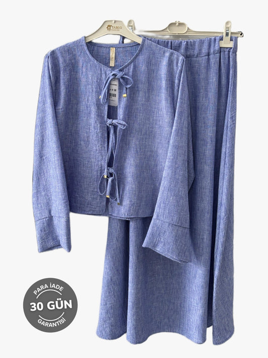 %40 İNDİRİMBağlamalı Keten Etekli Takım