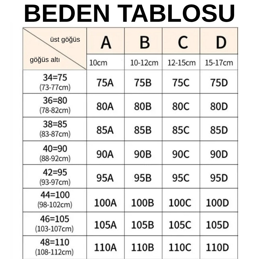 Lütfen beden tablosunda, göğüs ölçünüz (Bust) ve kilo aralığınıza göre size en uygun bedeni kolayca belirleyebilirsiniz.
